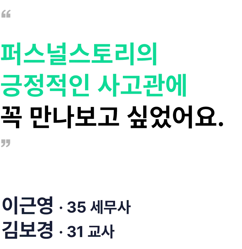 소중한 연인을 만날 수 있게 도와주셔서 너무 감사의 말씀을 드립니다. 정말 타이밍이 중요한 것 같아요! 결혼을 전제로 만난 건 아니지만, 짧은 시간 만남에 벌써 어느새 함께 미래를 그리고 있어서.. 좋은 소식이 있다면 또 한번 굿퍼슨에 연락 드릴게요.. ^^
